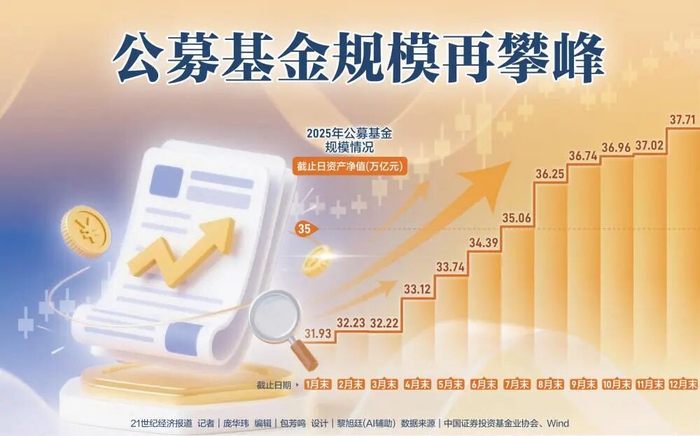 有分析人士指,若公募基金规模保持近年10%至15%的中枢增速,2026年公募基金总规模有望冲击40万亿元的新里程碑。